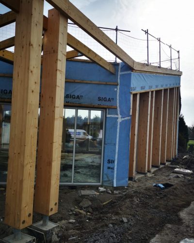 Construction d’une extension de 40 m2 avec façade brique, clos-couvert :